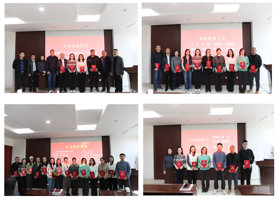 本次会议表彰了2025年先进部门、优秀员工、“年度好书”“十佳封面”和工会先进个人。